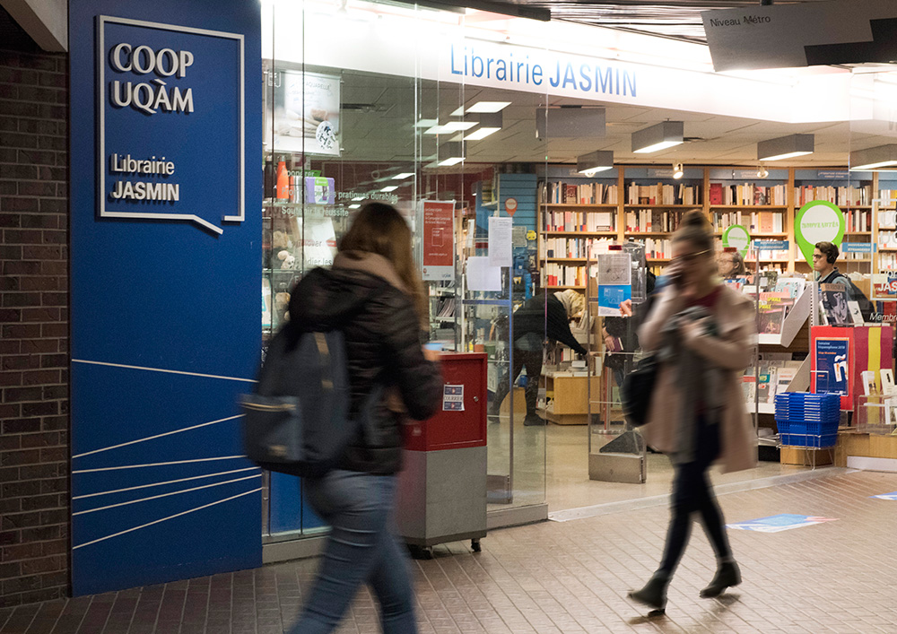 La Coop compte cinq points de services sur le campus: les librairies Jasmin (local J-M205), PK (local PK-M425) et ESG (local A-M850) ainsi que les boutiques Informatique (pavillon de Design) et des Arts (local J-M100).