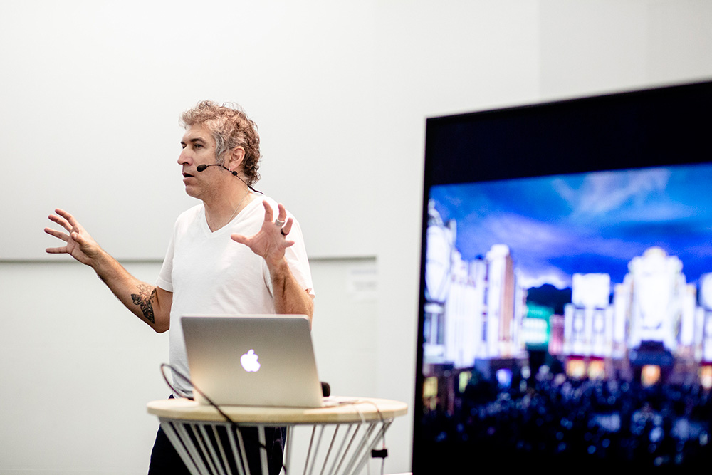 Expert de la création interactive, Hugues Sweeney a partagé avec le public ses constats et ses idées ayant émergé d’un parcours professionnel qui s’échelonne sur une vingtaine d’années. Après des études de premier cycle en philosophie, Hugues Sweeney s’inscrit à l’UQAM dans le but d’étudier le cinéma documentaire. Il apprendra plutôt les rudiments de la programmation web et l’abc de la captation photo, vidéo et sonore. «Le responsable du programme de la maîtrise en documentaire m’a suggéré de plutôt étudier en médias interactifs!», explique celui qui a fait partie de la troisième cohorte du programme.