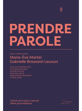 Au cours d’une rencontre pour discuter de leur métier avec de jeunes adultes à l’Institut du Nouveau Monde, les journalistes Marie-Ève Martel et Gabrielle Brassard-Lecours (B.A. animation et recherche culturelles, 2007) se sont aperçues que tous, ou presque, s’informaient exclusivement en ligne, sans payer pour aucun contenu d’actualité, que très peu comprenaient le processus de création d’une nouvelle et que plusieurs ne pouvaient distinguer un texte d’opinion d’un reportage. À ce contexte, il faut ajouter «la compétition féroce des fausses nouvelles en ligne (provoquant du même souffle une importante crise de confiance envers les médias traditionnels), la dégringolade croissante et accélérée des revenus qui précarise de plus en plus toutes les ramifications de la profession et un exode des talents», écrivent les deux jeunes femmes. Lasses de voir que ce sont presque uniquement les journalistes d’expérience (ayant vécu l’âge d’or du journalisme) qui se prononcent sur l’avenir des médias, elles ont voulu donner la parole à leurs confrères et consœurs. Dans Prendre parole : lettres de la (plus si jeune) relève journalistique, sept journalistes – parmi lesquels Naël Shiab (B.A. communication/journalisme, 2011) et Thomas Deshaies (M.A. science politique, 2016) – s’expriment sur les enjeux de la profession, mais aussi sur leurs incertitudes et leurs aspirations. Indépendance journalistique, stratégies pour combattre les fausses nouvelles, nouvelles instances médiatiques, traitement de données: ils nous disent, en somme, que la relève est déjà en train de remodeler le journalisme. Publié chez Somme Toute.