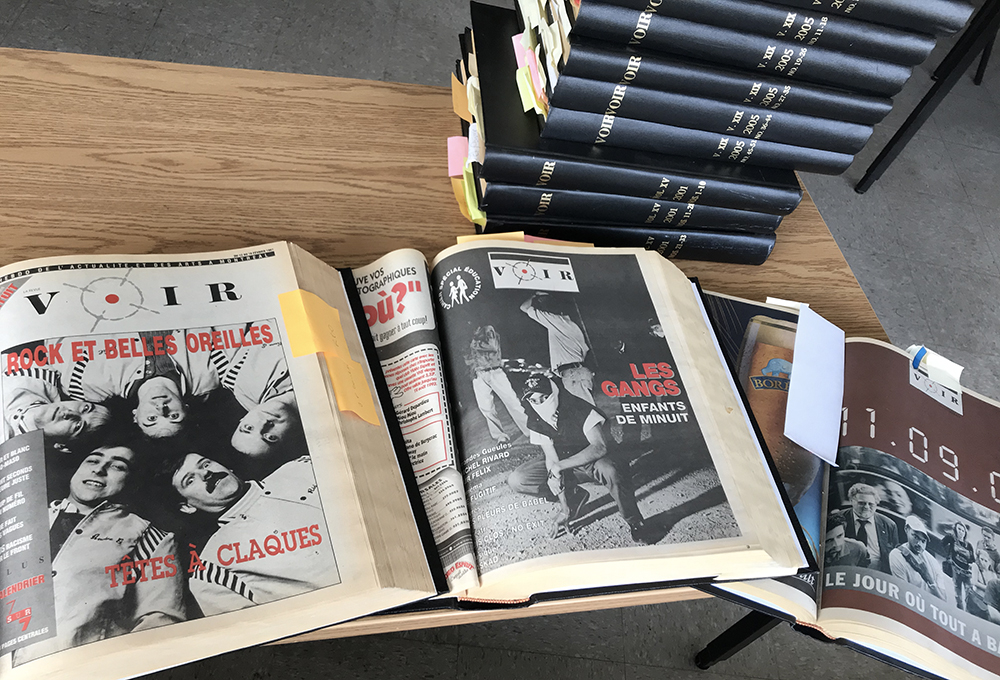 Au fil des ans, Voir a essaimé avec la publication d’éditions à Québec, Sherbrooke, Gatineau, Saguenay et Trois-Rivières, en plus d’une incursion du côté anglophone avec l’hebdomadaire Hour. «Seules les archives montréalaises seront conservées à l’UQAM», note Jean-Hugues Roy, qui a estimé le poids des 121 volumes reliés qu’il a transportés à un quart de tonne! «La disparition de ces exemplaires n’aurait pas signifié la disparition des archives du journal, puisque Bibliothèque et Archives nationales du Québec en possède dans sa Collection nationale, précise-t-il, mais l’idée que l’UQAM en garde une trace me semblait aller de soi.»