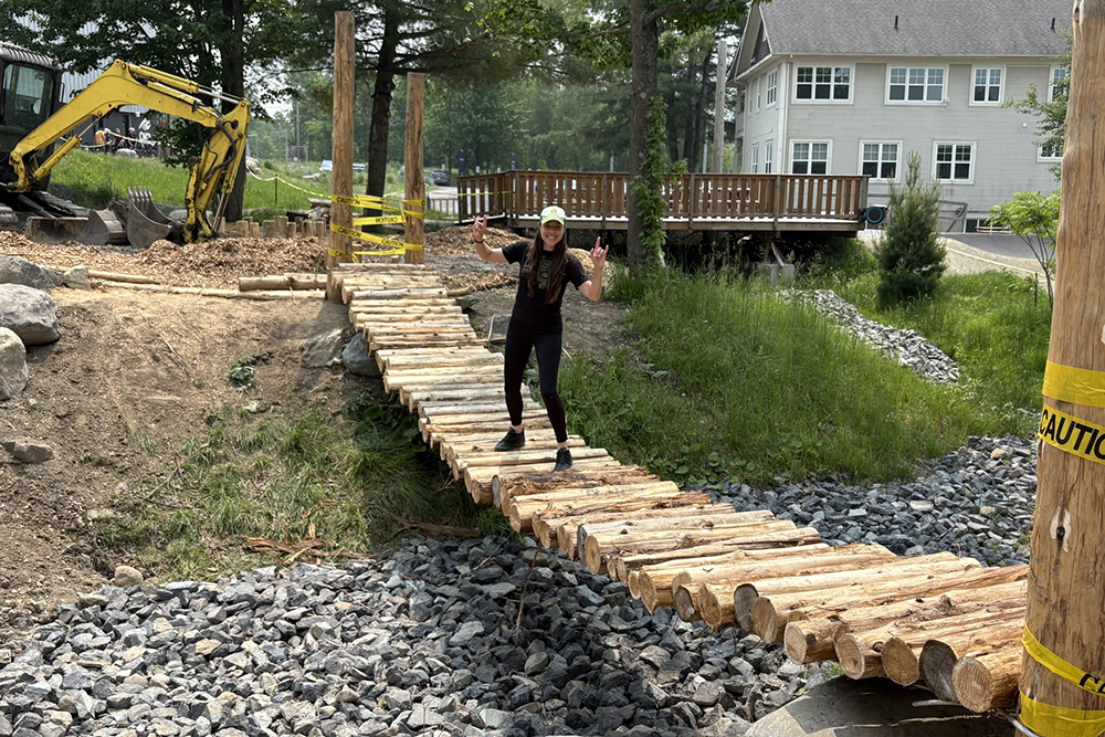 La mise en œuvre de l’Espace en mouvement a bénéficié d’une contribution financière de la Fondation canadienne pour l’innovation, d’un appui du Fonds de recherche du Québec – Santé ainsi que du programme Nouvelles Frontières en recherche. Pour finaliser le projet, la chercheuse a aussi compté sur la collaboration de nombreux partenaires. «Nous avons développé une coopérative de recherche en lien avec le milieu, dit-elle. Des experts ont aidé l’équipe à aménager l’espace tout en préservant la forêt. On a même protégé un terrier de marmottes qui se trouvait sur le terrain! La construction a impliqué des jeunes en réinsertion sociale ainsi que des parents à qui on a soumis notre approche et qui se la sont appropriée.» La chercheuse elle-même a mis la main à la pâte, coupant des billots et sablant des modules. «Tout est conçu à partir d’éléments locaux ou issus du recyclage, assure-t-elle. Nous avons eu aussi beaucoup de dons de nos partenaires. C’est un projet soutenu par la communauté.»