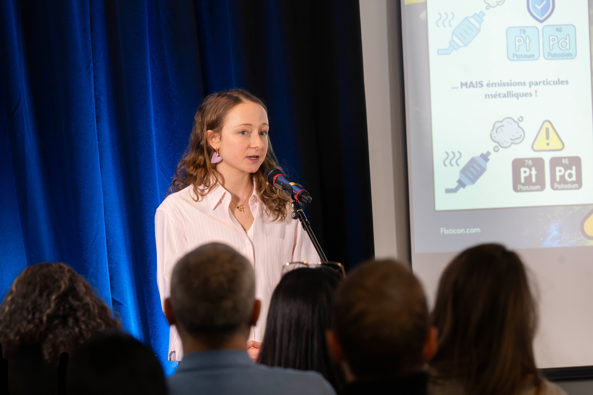 La doctorante en biologie Alice Carle, qui a obtenu la faveur des juges lors de la finale uqamienne du concours Ma thèse en 180 secondes, a amorcé sa présentation de manière originale. «Les victimes sont de petits invertébrés benthiques vivant dans le fond des lacs et des rivières, indispensables à la chaîne alimentaire. Les suspects? Deux métaux: le platine et le palladium.»