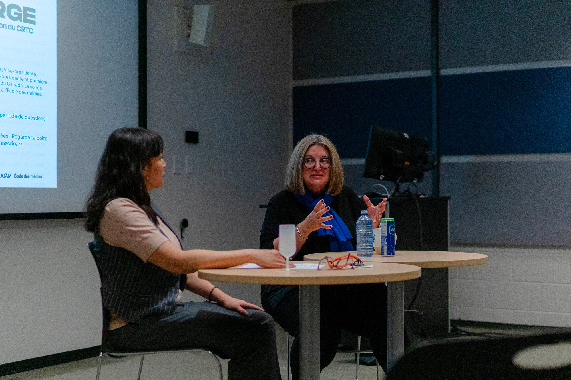 L’initiative TREMPLIN accueillait Nathalie Théberge, vice-présidente du Conseil de la radiodiffusion et des télécommunications canadiennes (CRTC), le 24 février dernier, dans le cadre d’un Grand Entretien animé par la professeure Catalina Briceño, directrice de l’École des médias. Une trentaine d’étudiantes et d’étudiants de premier cycle ont assisté à la rencontre ainsi que des professeures, professeurs, chercheuses et chercheurs de l’École des médias et du Département de science politique.